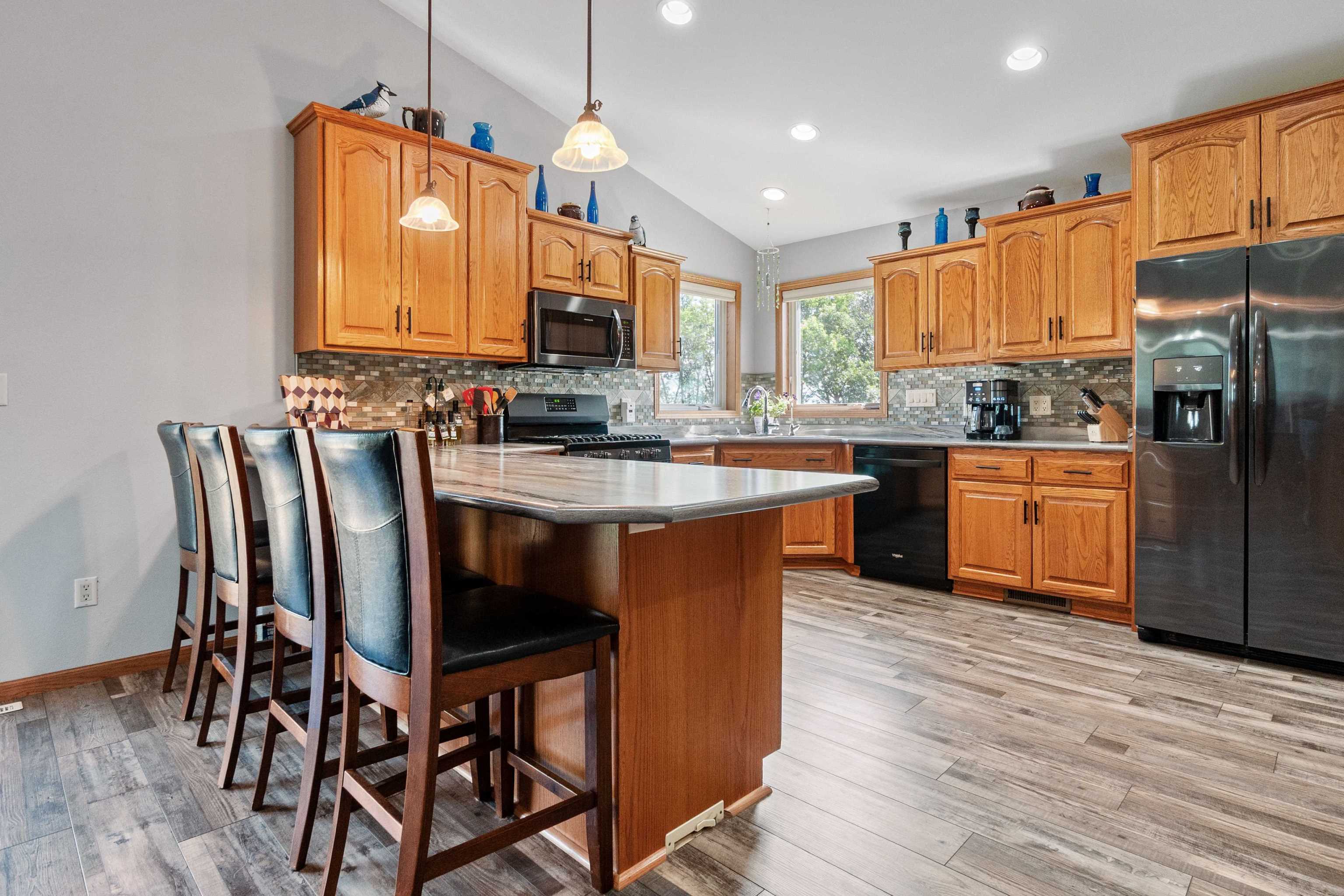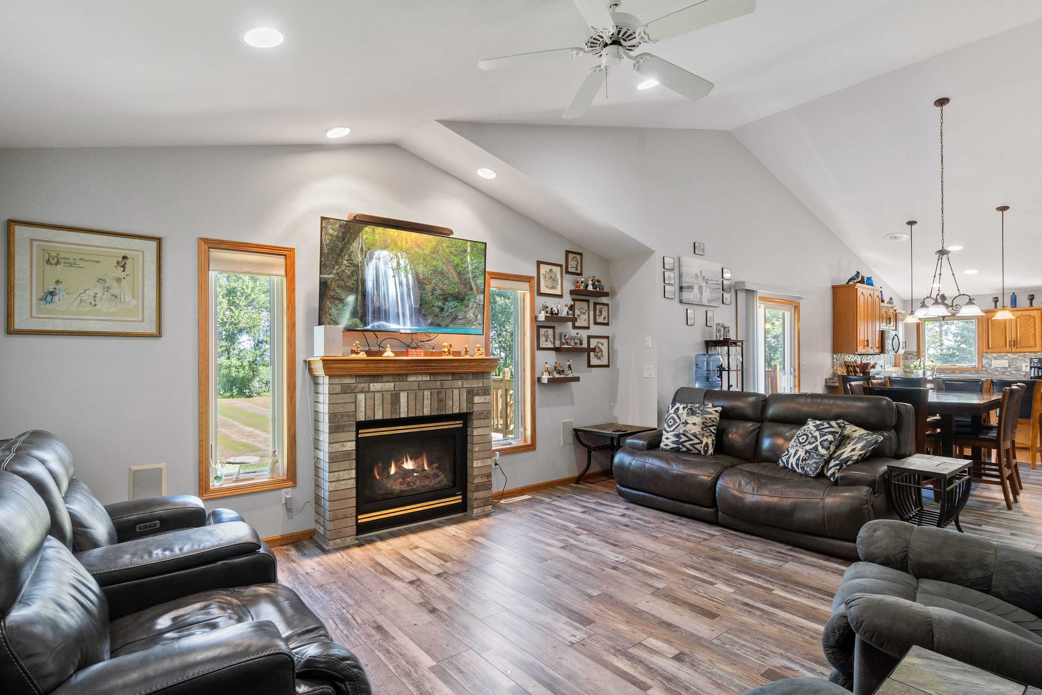 This property combines the timeless appeal of a classic farmhouse with today’s most sought-after modern conveniences. Nestled on 10 peaceful acres surrounded by mature trees and fields, this beautifully updated home offers 3 spacious bedrooms, 4 bathrooms, and an inviting front porch that welcomes you home. Step inside to an open-concept main floor featuring a fully renovated kitchen and livingroom with abundant custom cabinetry and a fireplace. The main-floor primary suite boasts a updated bath, while the lower level offers a large family room with a custom-built bar—perfect for entertaining. A dedicated home office and a 700 sq. ft. deck off the kitchen add to the home’s functionality and charm. Outside, enjoy professionally landscaped grounds, a cozy fire pit area, and 5 acres of manicured yard plus 4.6 tillable acres. With a newer roof, windows, and thoughtful upgrades throughout, this one-of-a-kind property offers the best of both worlds—rustic country charm with upscale living. The original farmhouse was built in 1910 and just a small part still exists. The new addition was built in 1998. The property also features an impressive array of outbuildings. Overall shed size is 120x60 divided into two distinct areas: Shed 1: 60’ x 40’ with in-floor heat, Mini-split A/C, floor drain, bathroom, and a 16’ x 24’ loft office and a workshop area. Shed 2: 60’ x 80’ fully foamed insulation with concrete floors and a 34’ airplane hangar door. Shed 3: 20’ x 30’ heated and insulated, currently used as a workout room. There is an incinerator shed that is currently not in use. 5 grain bins complete the collection of buildings on the property, offering even more functional space and potential. Come see all this Elbow Lake gem has to offer. Schedule your showing today!