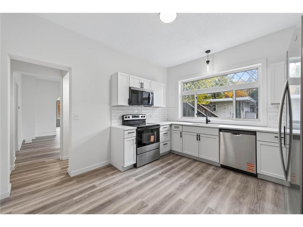 New in 2025: kitchen cabinets, quartz counters, backsplash, stainless steel appliances, new LVP floors and new carpet, remodeled bathrooms, new plumbing, new water heather, completely rewired and new electrical panel brought up to 2025 codes. And finally fresh paint throughout.